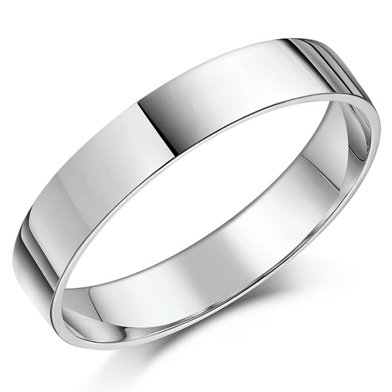 4mm 9ct White Gold Light Flat Court Wedding Ring