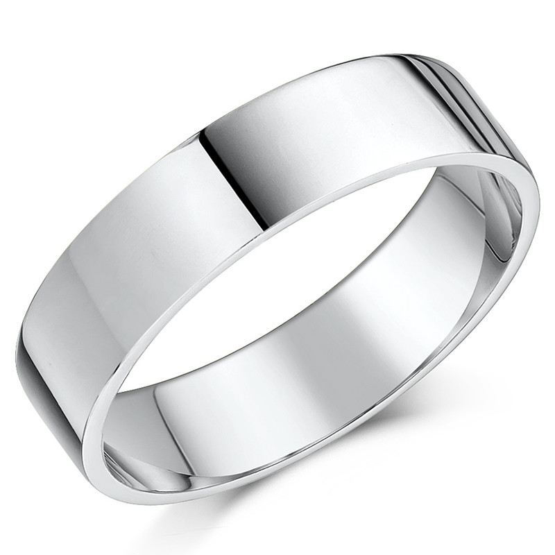 5mm 9ct White Gold Heavy Flat Wedding Ring