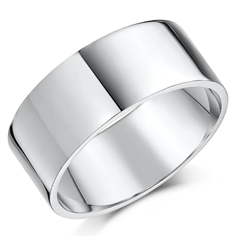 8mm 18ct White Gold Heavy Flat Wedding Ring