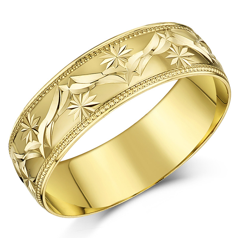 This Patterened Wedding Ring, has been fashioned from the finest of Gold - long-lasting and known to be used for wedding rings. These rings are solid Gold rings, with a UK assay office hallmark inside.