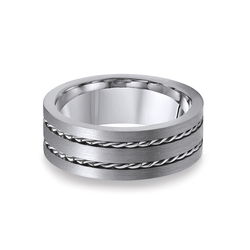 Titanium Flat Court Double Rope Patterned 8mm Ring